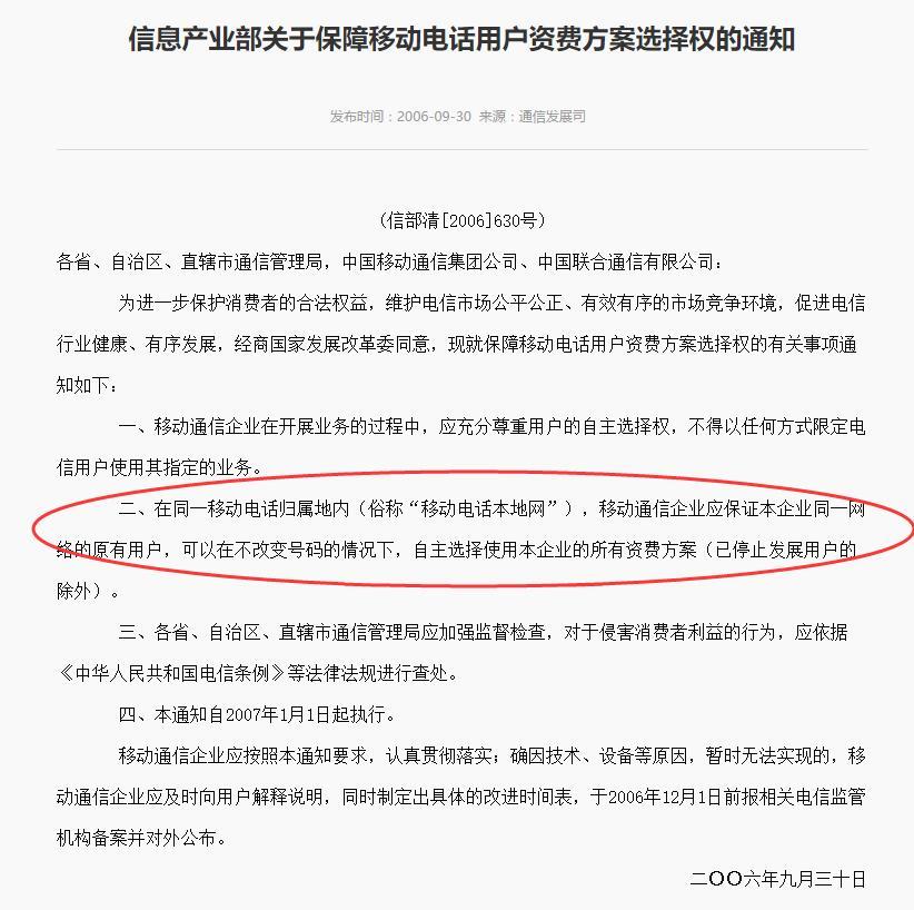 4、等待运营商回访电话 5、回访电话一般都是告知转套餐正在处理 6、转套餐成功 7、工信部还会有个电话回访确认是否已经协商解决 按照这样的步骤,运营商一般都会为你换好套餐。最后附上工信部申诉网站:点击这里跳转 信部清[2006]630号文件全文: 信部清[2006]630号文件